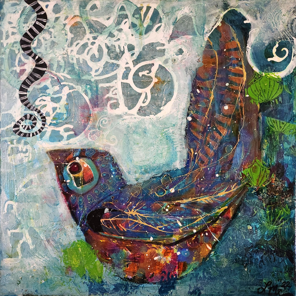 "The Early Bird Gets The Worm" Colorful Abstract Art